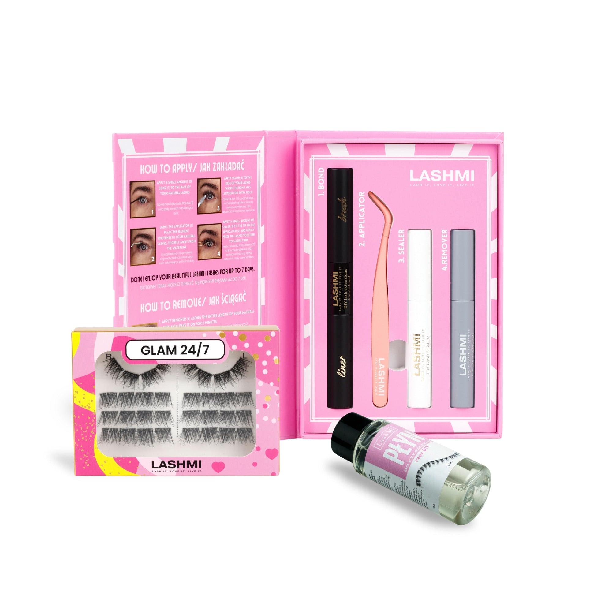 Kompletny zestaw startowy, w którym znajdziesz wszystko, czego potrzebujesz do aplikacji, ściągania i czyszczenia rzęs bondingowych – wygodnie i bez wychodzenia z domu.